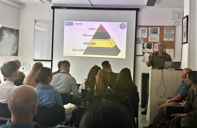 Na úvod bolo študentom predstavené letisko Kuchyňa a jeho poslanie v rámci Vzdušných síl Ozbrojených síl Slovenskej republiky. Následne plukovník Jesus Marco a plukovník Ángel Espiga priblížili študentom pôsobenie španielskych jednotiek pôsobiacich na Slovensku. Počas prednášky ponúkli študentom širší pohľad na prítomnosť jednotiek NATO v našom regióne, vysvetlili úlohu veliteľstva pôsobiaceho na našom letisku a mnohonárodných jednotiek umiestnených vo vojenskom výcvikovom priestore Lešť, ktorým velia práve španielske jednotky. Po skončení prvej časti programu sa všetci presunuli do priestorov leteckých hangárov, kde bola prítomným predstavená letecká technika, typu L-410 a C-27J Spartan, ktorou letisko Kuchyňa disponuje.